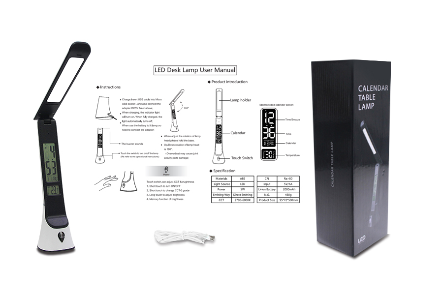 It is a LCD screen led reading lamp. The screen showed the time, date, week, temperature. Also, it can set up the alarm clock.